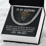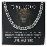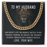 To My Husband, God Doesn't Give The Hardest Battles To His Toughest Warrior, He Creates The Toughest Soldiers Through Life's Hardest Battles Love, Your Wife