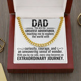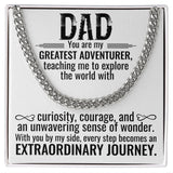 DAD, You are my GREATEST ADVENTURER, teaching me to explore the world with curiosity, courage, and an unwavering sense of wonder. With you by my side, every step becomes an EXTRAORDINARY JOURNEY.