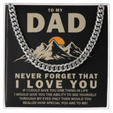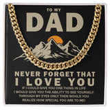 To My Dad, NEVER FORGET THAT I LOVE YOU If I Could Give You One Thing In Life I Would Give You The Ability To See Yourself Through My Eyes Only Then Would You Realize How Special You Are To Me!