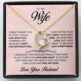 ” To My Wife, I Didn’t Marry You So That I Could Live With You. I Married You Because I Can’t Live Without You. I May Not Be Your First Date, Your First Kiss, Or Your First Love, But I Just Want To Be Your Last Everything. I Squeezed This Necklace Really Tight And Filled It With My Love And Light. If I’m Ever Not Here And You Need A Hug Just Hold This Close And Feel My Love. Love, Your Husband”