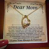 Dear Mom, I Am Forever Grateful For All That You Are And How You Raised Me To Be. Thank You For Being My First Teacher, My First Best Friend And The Woman I Know Who Will Love Me 'Til The End. Wear This As A Constant Reminder That I May Have Outgrown Your Lap, I Will Never Outgrow A Place In Your Heart. Even When I'm Not Close By, I Love And Appreciate You Always! I Love You Always & Forever